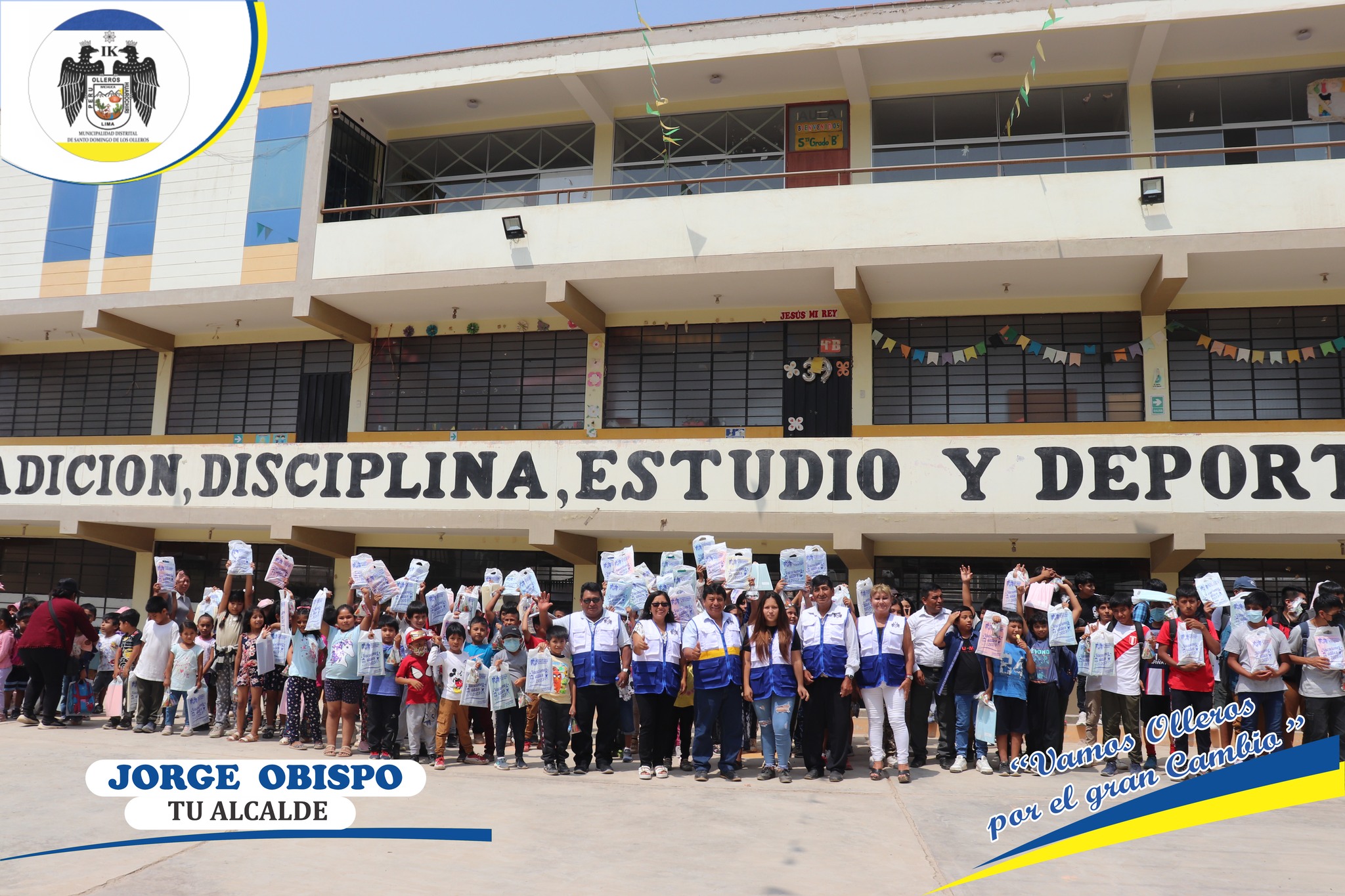 Al final de la jornada el alcalde distrital Jorge Obispo Huapaya hizo la entrega de kits escolares a los niños y jóvenes, como una manera de incentivar el esfuerzo puesto por ellos en el desarrollo de sus capacidades.