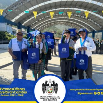 La Municipalidad Distrital de Santo Domingo de los Olleros, a través de la Gerencia de Desarrollo Humano y Promoción Social, realizó la entrega de kits escolares en la I.E. N.° 20840 Santiago Erik Antúnez de Mayolo Rynning, ubicada en la localidad de Piedra Grande, beneficiando a los estudiantes de los niveles de primaria y secundaria.