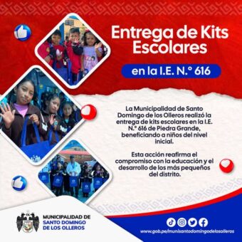 La Municipalidad de Santo Domingo de los Olleros realizó la entrega de kits escolares en la I.E. N.° 616 – Piedra Grande