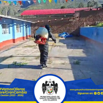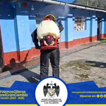 La Municipalidad de Santo Domingo de los Olleros, por disposición del alcalde Jorge Obispo Huapaya, inició la campaña de fumigación en las instituciones educativas del distrito, con el objetivo de prevenir la presencia de plagas, roedores e insectos. ????????????