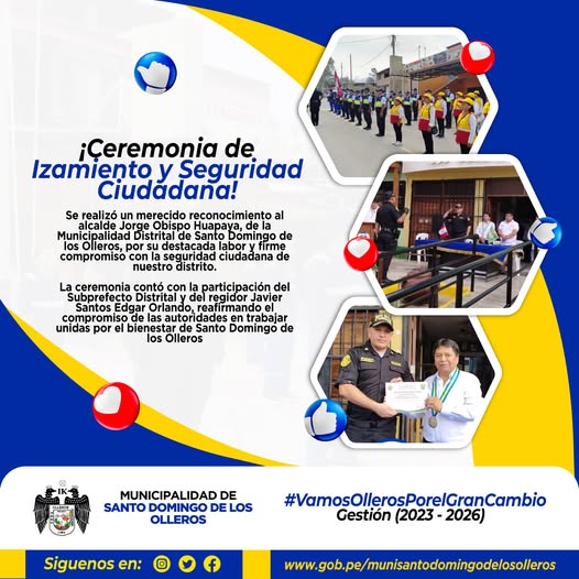 En el marco del izamiento del Pabellón Nacional, se reconoció la labor y compromiso de las autoridades de Santo Domingo de los Olleros, reafirmando el trabajo articulado con…