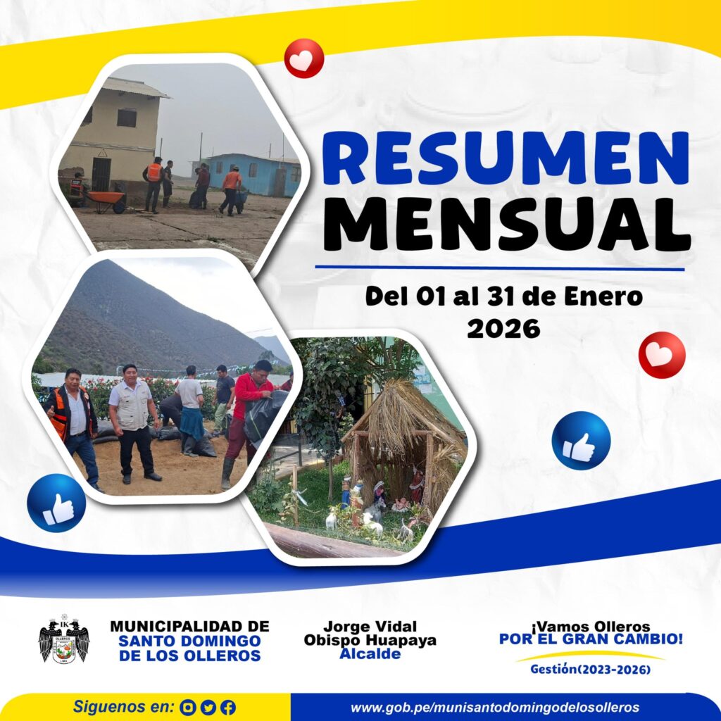 Durante el mes de enero, la Municipalidad Distrital de Santo Domingo de los Olleros desarrolló diversas actividades orientadas al bienestar social, la educación, la prevención y el fortalecimiento de…