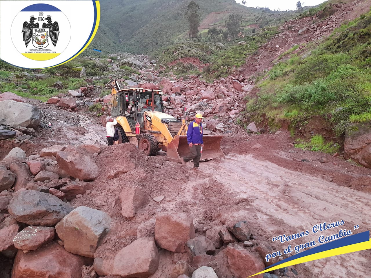 La Municipalidad de Santo Domingo de los Olleros a cargo del alcalde Jorge Obispo Huapaya a través de la Gerente de Desarrollo Urbano y Rural, y la Sugerencia de Riesgos de Desastres y Defensa Civil, realizaron la limpieza y rehabilitación de vías con las maquinarias de la municipalidad para el pase de los agricultores y ganaderos.