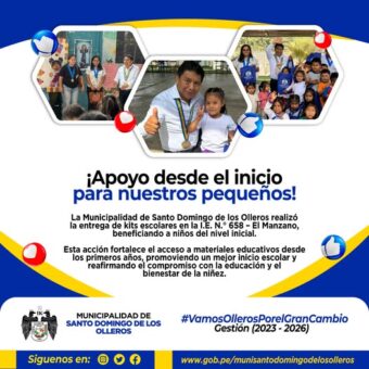 La Municipalidad de Santo Domingo de los Olleros realizó la entrega de kits escolares en la I.E. N.° 658 – El Manzano, beneficiando a niños del nivel inicial.